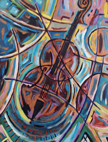 My paintings are intuitive and mainly abstract, inspired by the realm of musical perception